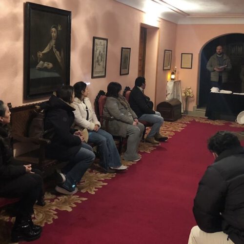 El encuentro se ha desarrollado en distintos espacios del Obispado. Durante la actividad se han recorrido también por algunas dependencias del edificio, recreando, por ejemplo, en uno de los espacios la ambientación de Nazaret, para finalizar posteriormente en el salón Mazarrasa, donde ha concluido la jornada.