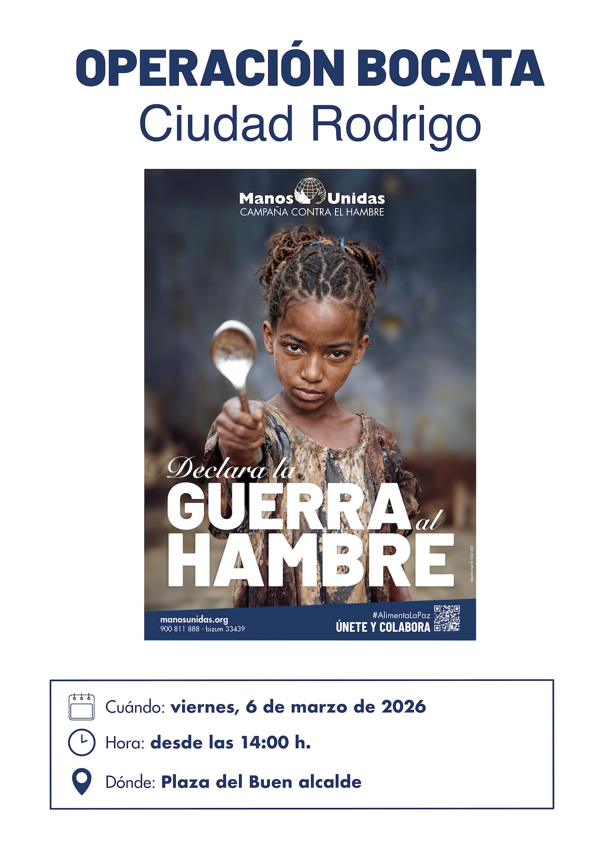 La Delegación Diocesana de Manos Unidas en la Diócesis de Ciudad Rodrigo ha programado diversas actividades con motivo de la Campaña contra el Hambre, que este año se celebra bajo el lema ‘Declara la guerra al hambre’.
