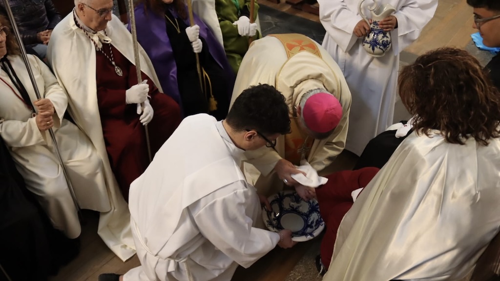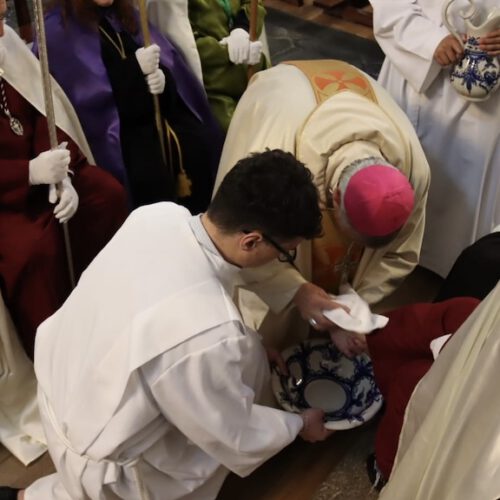 El obispo ha explicado que el lavatorio de los pies es un «gesto de este amor extremo». «Jesús se pone de rodillas delante de cada discípulo y se comporta como un servidor, como un esclavo», ha señalado Mons. José Luis Retana, destacando que «la verdadera autoridad se ejerce poniéndose el delantal».
